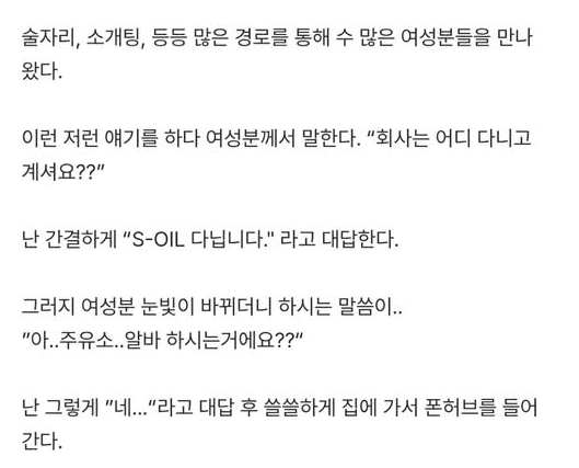 여자 만날때 회사 이름말하면 눈빛부터 달라지네..