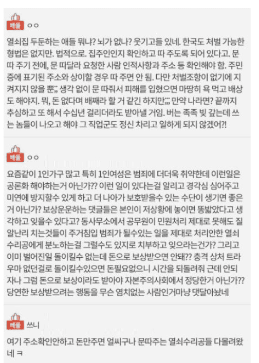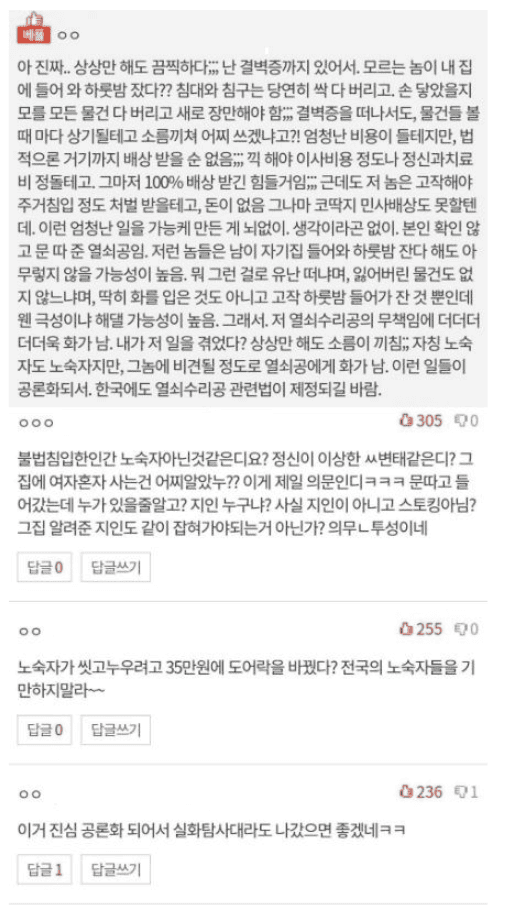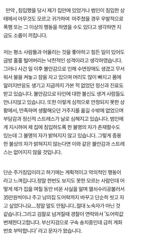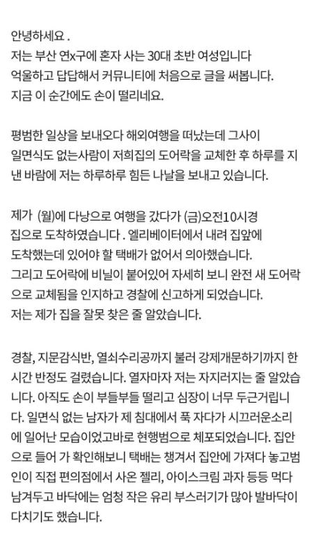 여자 혼자사는데 도어락 뜯고 들어간 노ㅅ자..