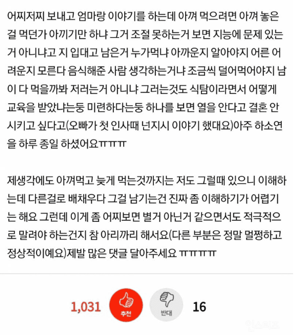 예비 새언니 식습관 때문에 엄마가 화났어요..