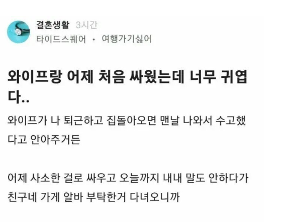 와이프랑 어제 처음으로 ㅆ웠는데 너무 귀엽다..