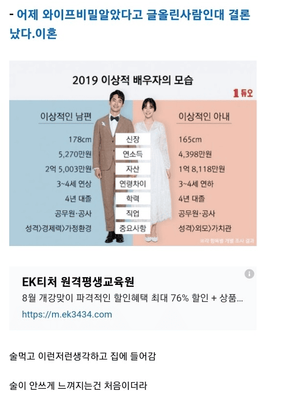 와이프의 비밀 확인후에 이혼 결심한 주갤형님..