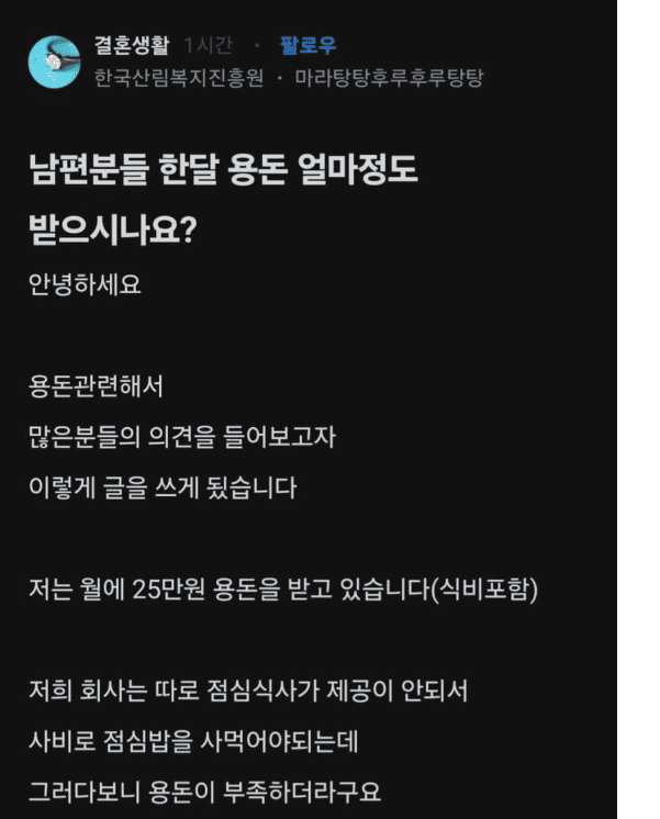 용돈없이 돈 자유롭게 쓰는 남자들 부러움..