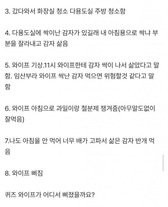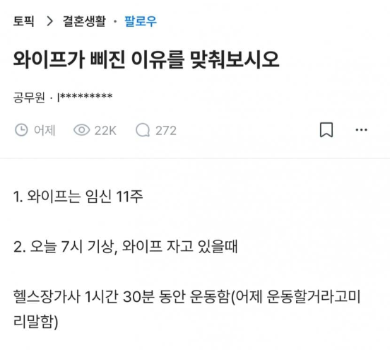 우리 와이프가 삐진이유를 맞춰주세요..