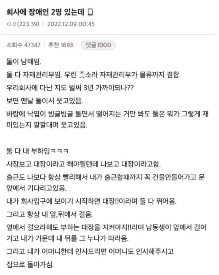 우리 회사에 장ㅇ인 2명이 있는데..
