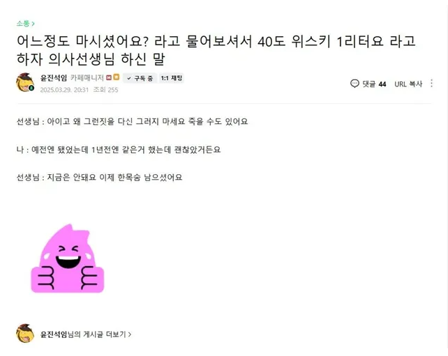위스키 1리터를 원샷ㄸ린 상남자의 최후..