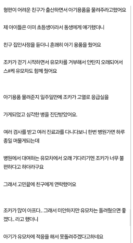 유모차 때문에 친구랑 관계가 끝났어요..