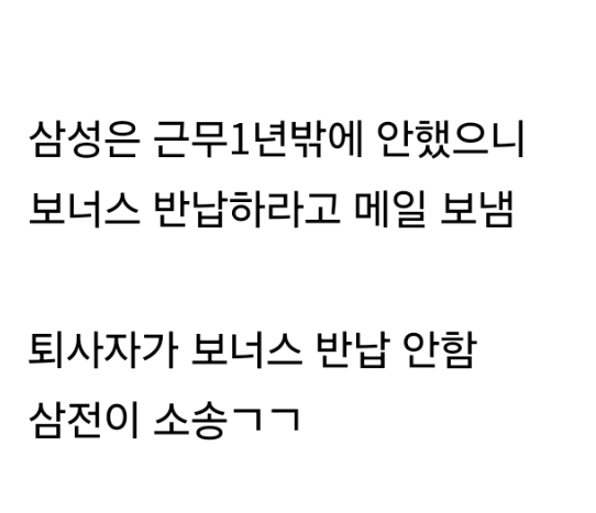 육후+퇴사 후에 보너스 반납안했다고 소송당한 삼성직원..