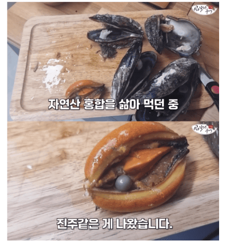 자연산 홍합먹다가 흑진주를 발견한 유튜버..ㄷㄷ