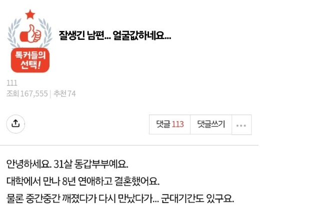 잘생긴 남편.. 역시 얼굴값 하네요..