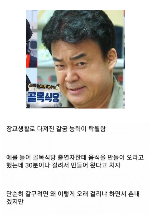 장교생활로 몸에밴 백종원의 갈ㄱ 기술..ㄷㄷ