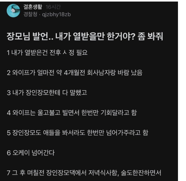 장모님 발언.. 내가 화날만 한거야?