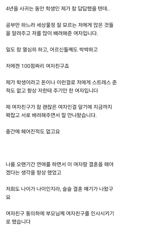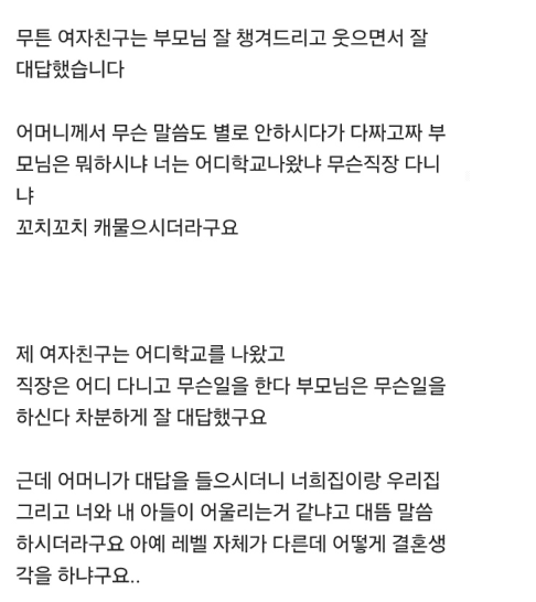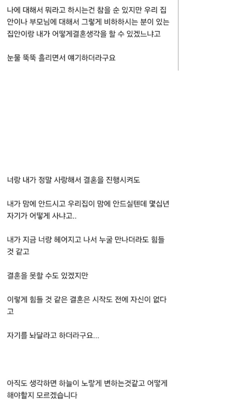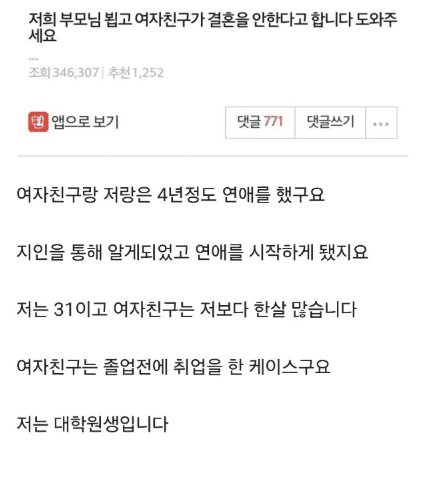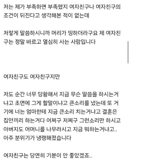 저희 부모님 뵙고 여자친구가 결혼을 안한다네요..