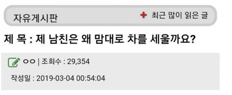 제 남친은 왜 자기 마음대로 차를 세울까요?