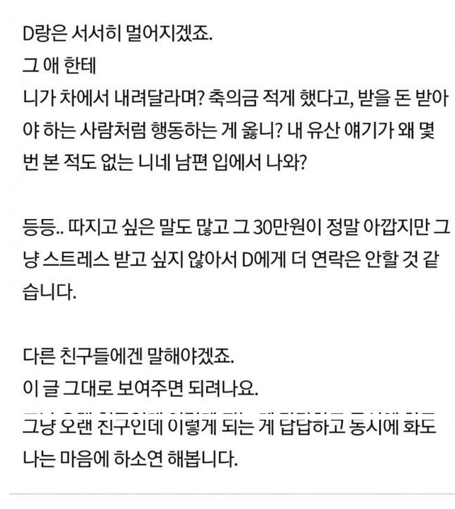 제 축의금이 너무 작다고 친구랑 ㄷ툼..