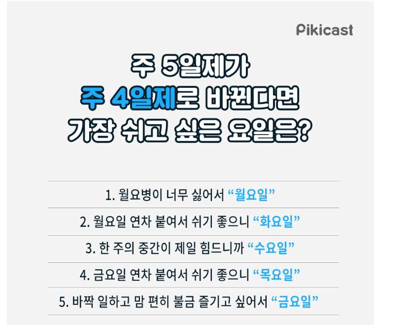 주 4일제를 시행한다면 가장 쉬고 싶은 요일은?