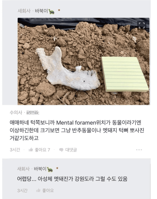 지나가다 밭에서 수상한 뼈를 발견한 블라인..