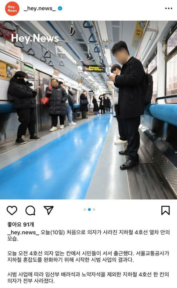 지하철 4호선에 좌석이 없어지니 발생한 일..
