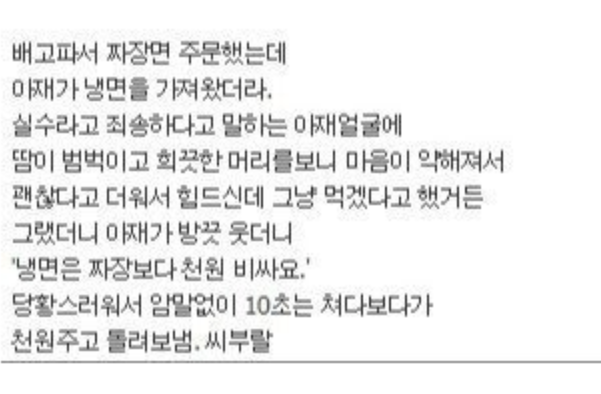 짜장면 배달 시켰는데 냉면이 왔음..