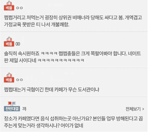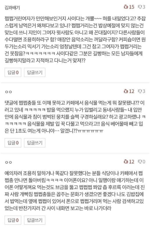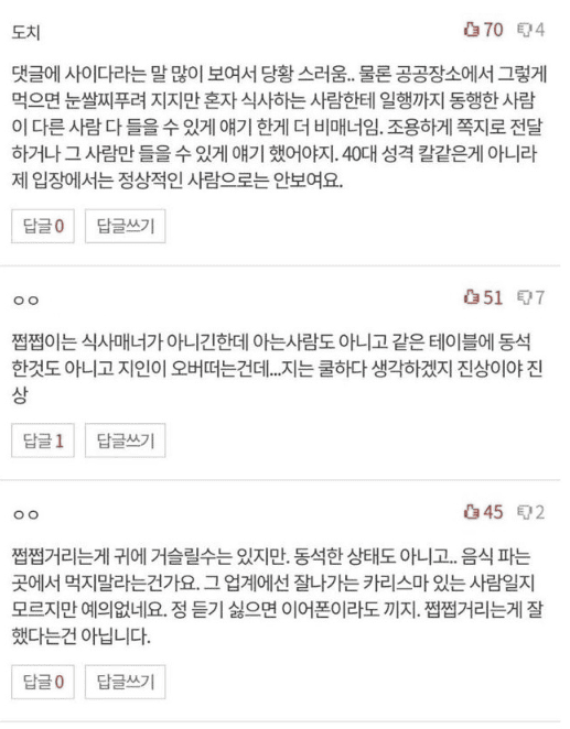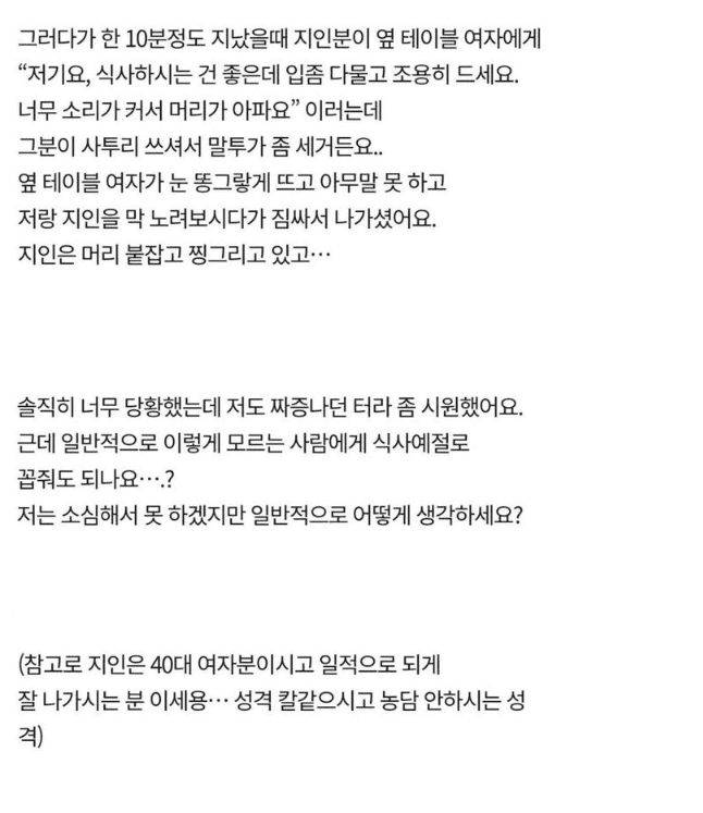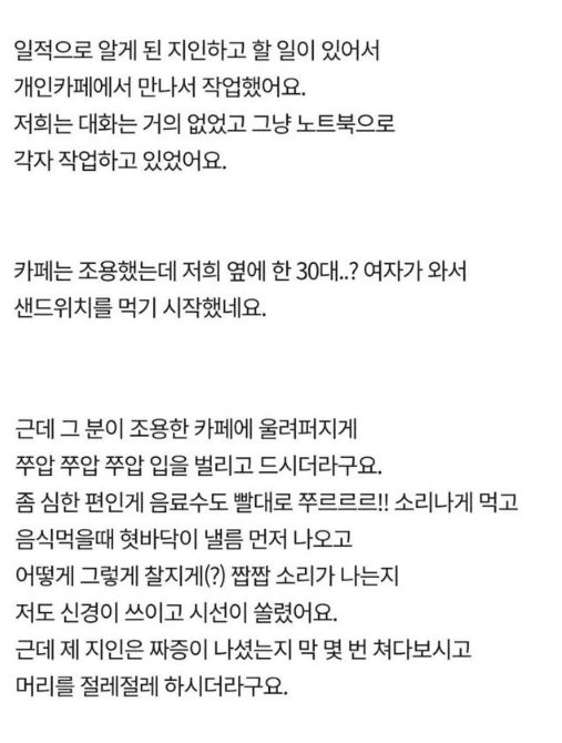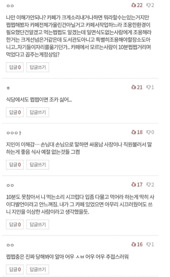 짭짭거리면서 먹는사람한테 조용히좀 하라는 사람..