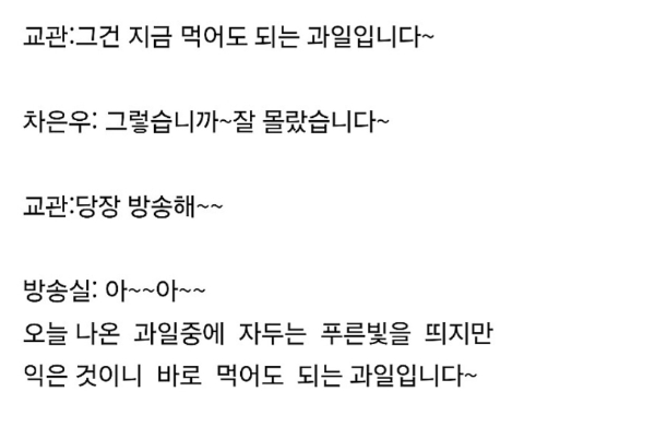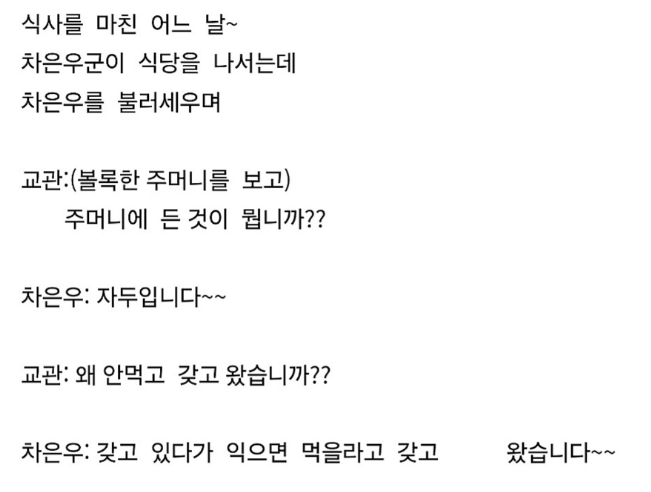 차은우 훈련병 당시 자두사건..