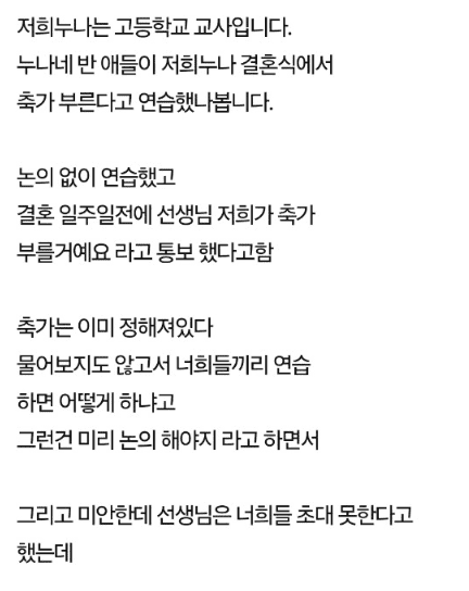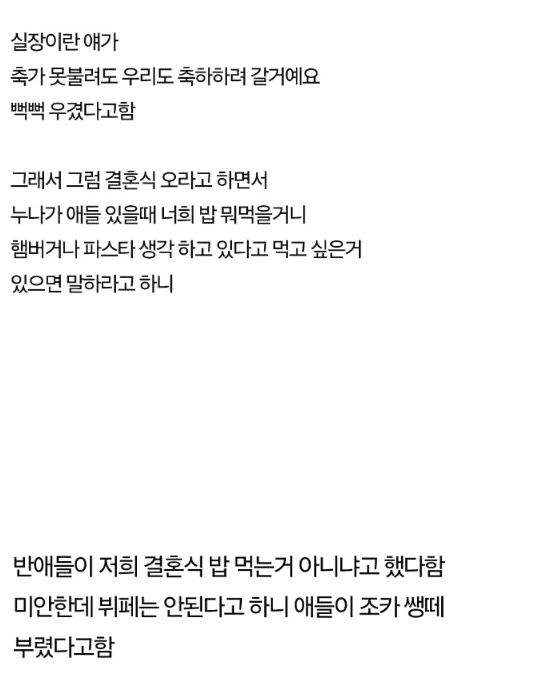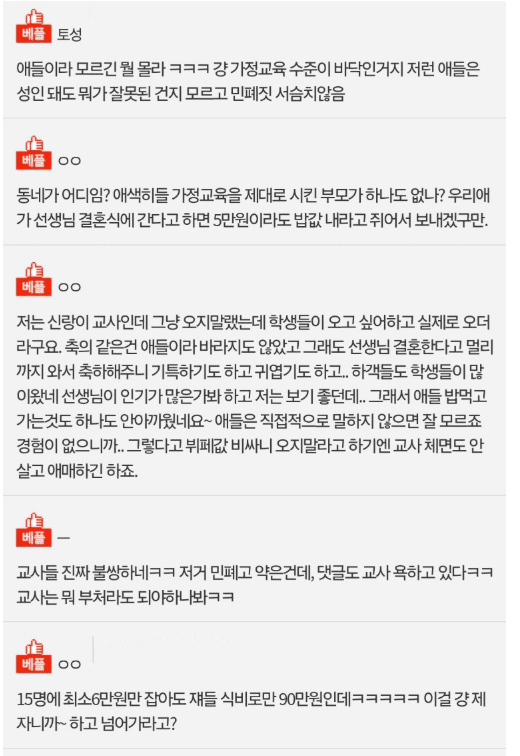초대안한 학생들이 선생님 결혼식에서 뷔페먹으면 민ㅍ인가요?