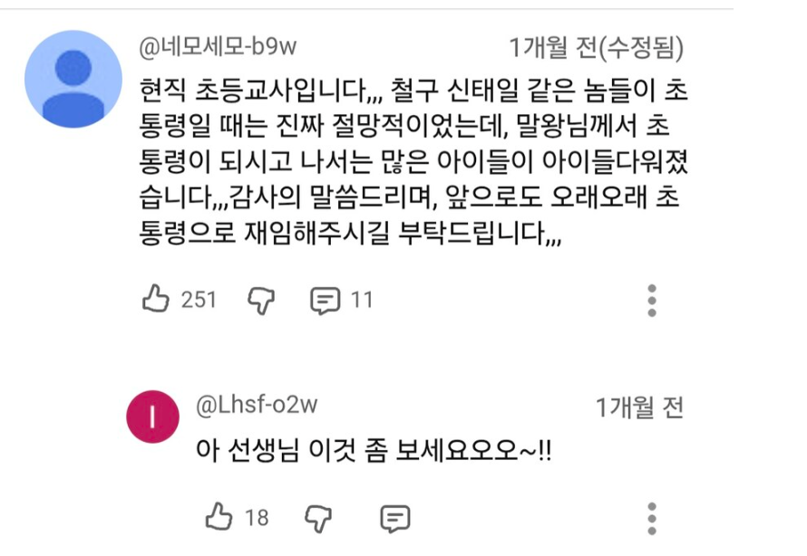 초등학생 교사가 말왕에게 감사해하는 이유..