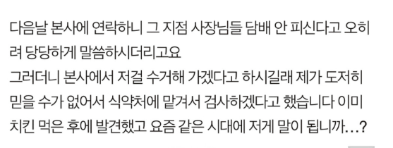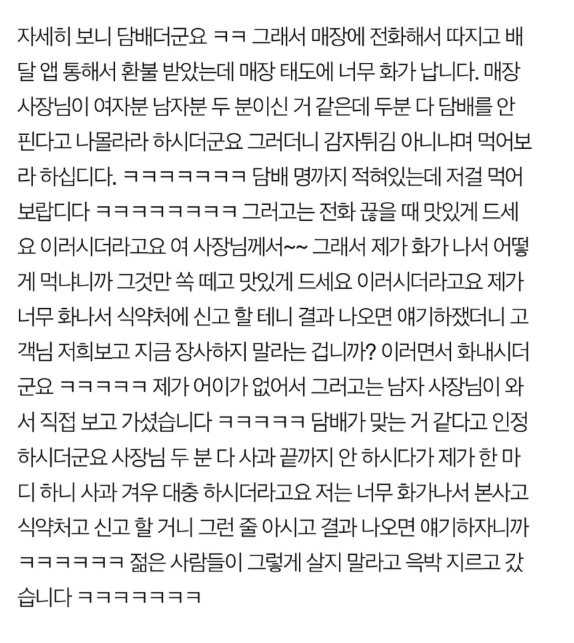 치킨을 시켰는데 담ㅂ튀김이 왔어요..