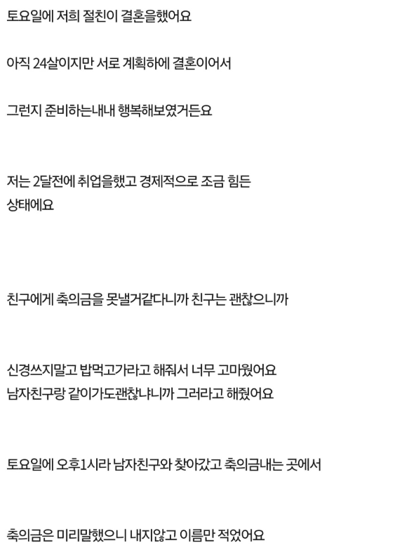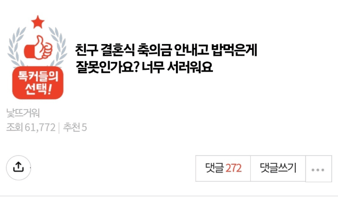 친구 결혼식에 축의금 안내고 밥먹었는데 잘못인가요..?