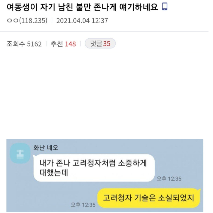 친오빠한테 관심없는 말을 했을때 생기는 일..