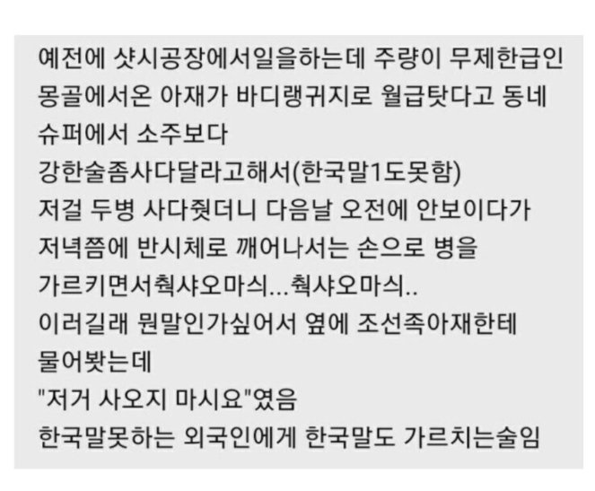 캪틴큐를 2병 원샷한 몽골 아재의 대ㅊ사..ㄷㄷ