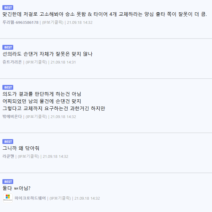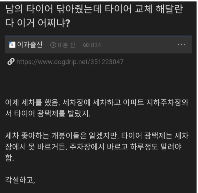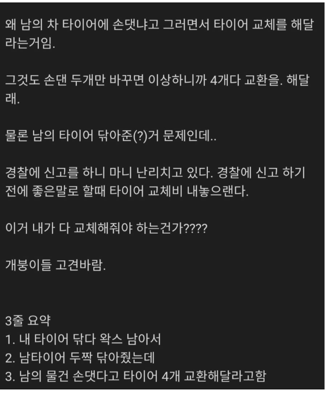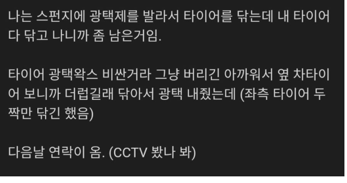 타이어 닦아줬더니 물어내라고 하네..