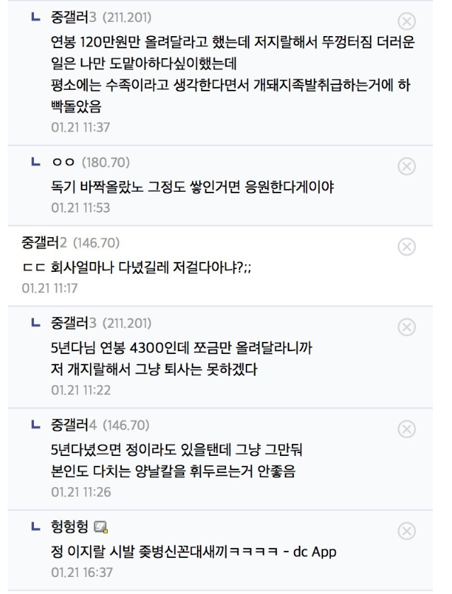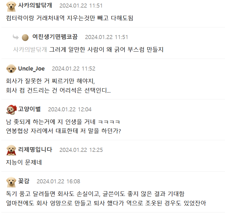퇴사하는데 그냥은 안하겠다는 디시러..