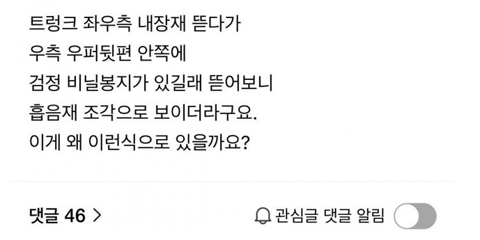 트렁크 내장재 뜯다가 발견된 봉투의 정체..