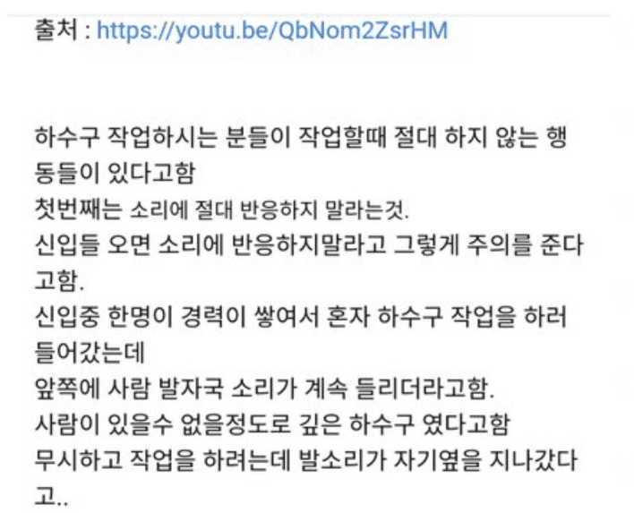 하수구 작업하는 사람들의 절대 금기사항..