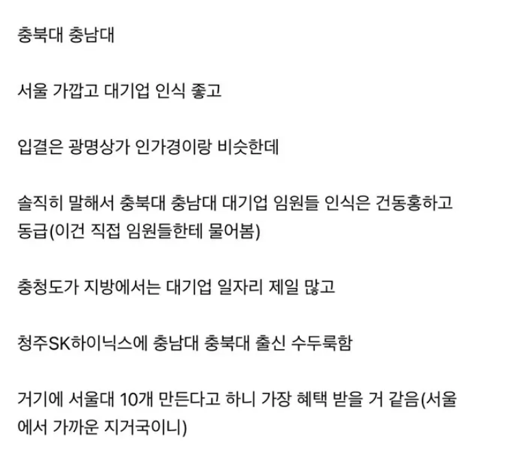 하위권 학생들에게는 충북대와 충남대가 가성비 최고인 이유..