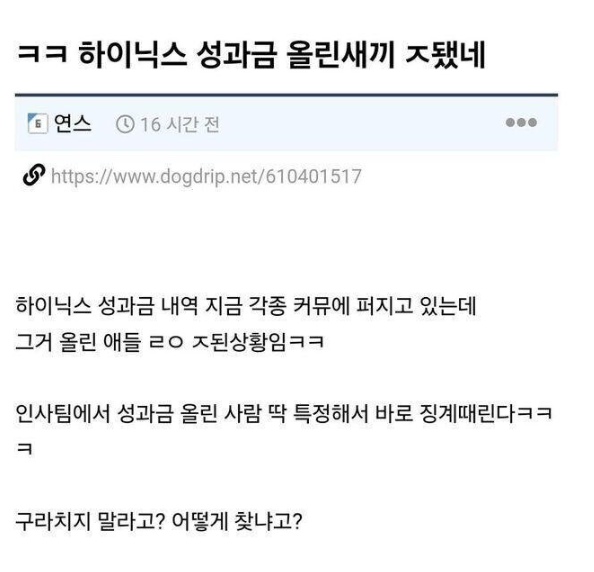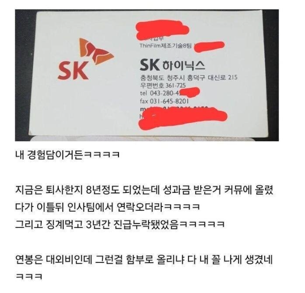 하이닉스 성과금 올린 사람이 ㅈ된 이유..