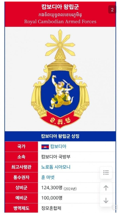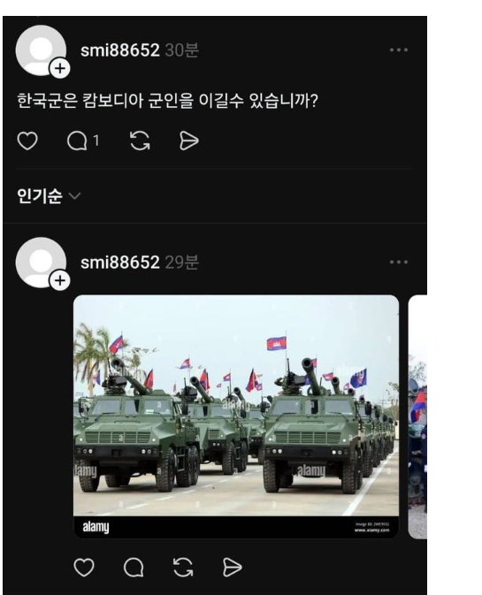 한국 군대는 캄보디아 군대를 이길수 있습니까?
