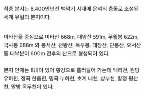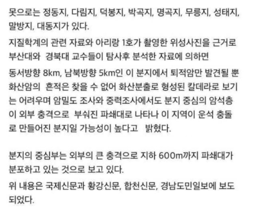 한반도에 운석 떨어져 만들어졌다는 동네..