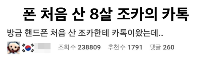 핸드폰 처음 산 8살 조카의 카톡..