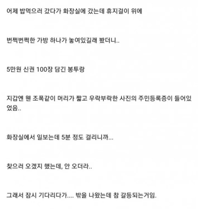 화장실에서 현금 500만원을 주움..ㄷㄷ
