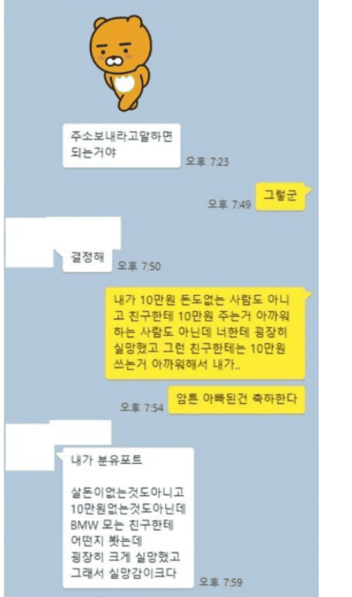 10만원으로 친구관계 정리함..