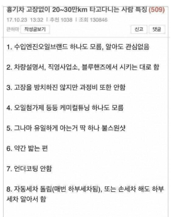 20~30만 km 차를 큰 고장없이 타고다니는 사람들의 특징..