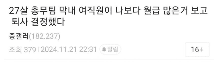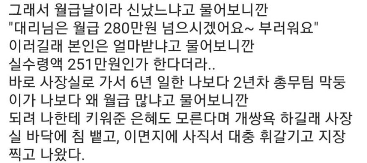27살 막내 직원보다 월급 적어서 퇴사한 6년차 대리..ㄷㄷ