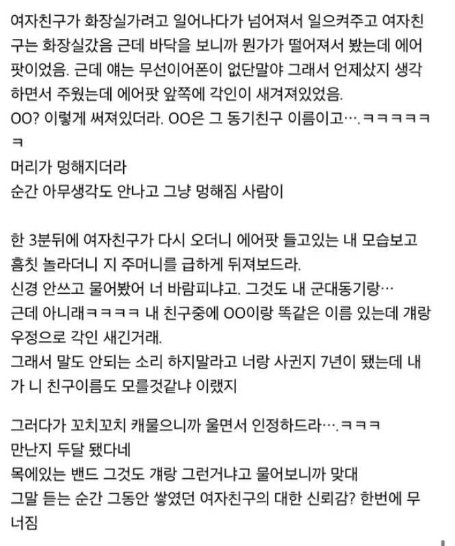 7년간 사귄 여자친구 바ㄹ폈는데 어떻게 알았냐면..