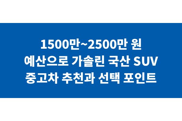 1500만~2500만 원 예산으로 가솔린 국산 SUV 중고차 추천과 선택 포인트