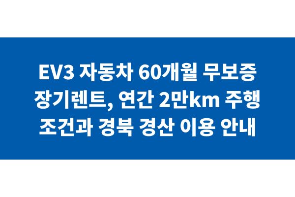 EV3 자동차 60개월 무보증 장기렌트, 연간 2만km 주행 조건과 경북 경산 이용 안내