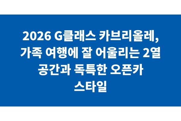 2026년형 벤츠 G클래스 카브리올레는 4도어 롱바디 형태와 소프트톱 란도레 디자인 덕분에 뒷좌석 공간과 승차감이 크게 향상됐습니다. 이로 인해 가족 여행용 SUV로서 충분한 편안함과 실용성을 갖췄죠. 투박하면서도 고급스러운 외관에 오픈카의 경쾌한 감성을 더한 모델이라, 넉넉한 실내 공간과 편리함을 중시하는 가족 단위 여행객에게 좋은 선택이 될 수 있습니다. 특징 내용 2열 승차감과 공간 4도어 롱바디 구조로 뒷좌석도 … 더 읽기