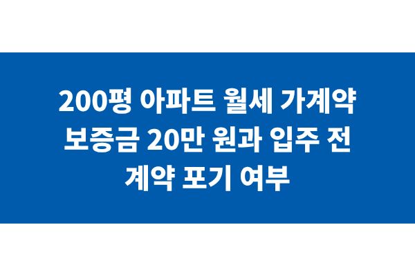 200평 아파트 월세 가계약 보증금 20만 원과 입주 전 계약 포기 여부