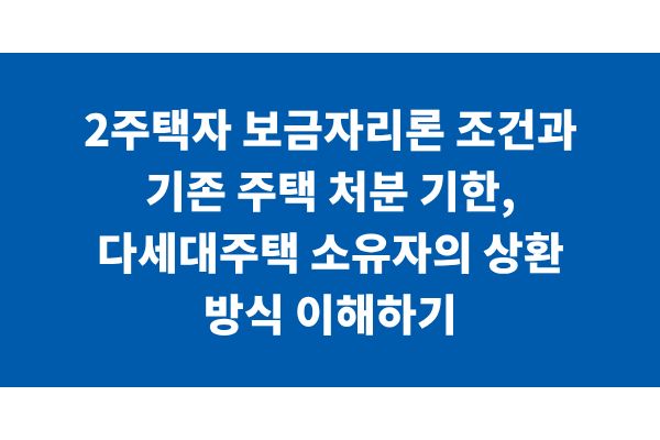 2주택자 보금자리론 조건과 기존 주택 처분 기한, 다세대주택 소유자의 상환 방식 이해하기