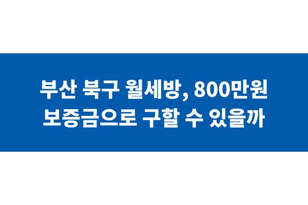 부산 북구 월세방, 800만원 보증금으로 구할 수 있을까